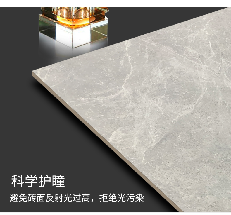 柔光瓷磚是磚面反射介于強(qiáng)光與弱光之間的一類瓷磚,其結(jié)合亮光類瓷磚的高調(diào)明艷裝飾和啞光類瓷磚的低調(diào)內(nèi)斂搭配效果,通過(guò)動(dòng)態(tài)柔光蠟拋技術(shù),降低產(chǎn)品反光率,從而達(dá)到人體舒適的視覺(jué)感受以及無(wú)光污染的空間裝飾效果。優(yōu)點(diǎn):1.視覺(jué)舒適,無(wú)光污染 2.堅(jiān)固耐磨,不易刮花.
