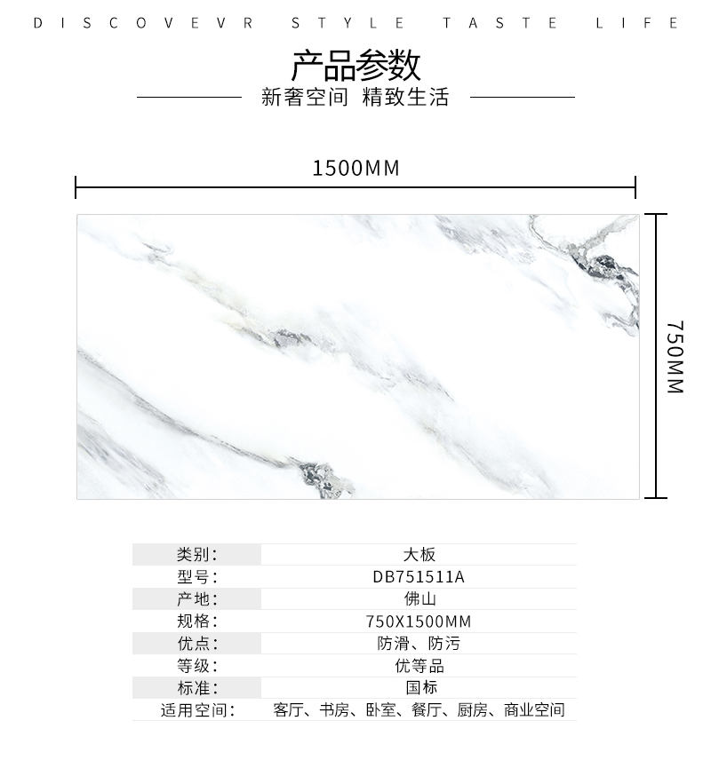 大規(guī)格瓷磚(DB751511A)-工程瓷磚 金曼古大規(guī)格瓷磚引進(jìn)世界最先進(jìn)的超大型壓機(jī)自動壓制而成,具有超大規(guī)格,超高硬度,超高致密度,超長時間煅燒,超低吸水率,超高光澤度。其磚面紋理流暢自然,效果逼真,適用于大型工程外墻干掛和酒店、商場、各辦公樓大堂等地面裝修