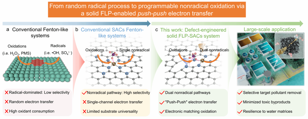 该工作不仅为精准调控单原子催化剂的非自由基氧化路径提供了“固体FLP”新范式,也为高效、选择性、可持续的水处理技术开辟了新路径。