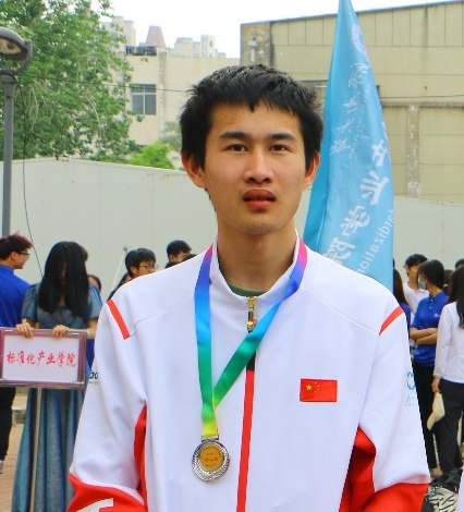 化2202班,共青团员,荣获男子甲组跳远、男子甲组三级跳远第一名;男子甲组4×100团体第二名。