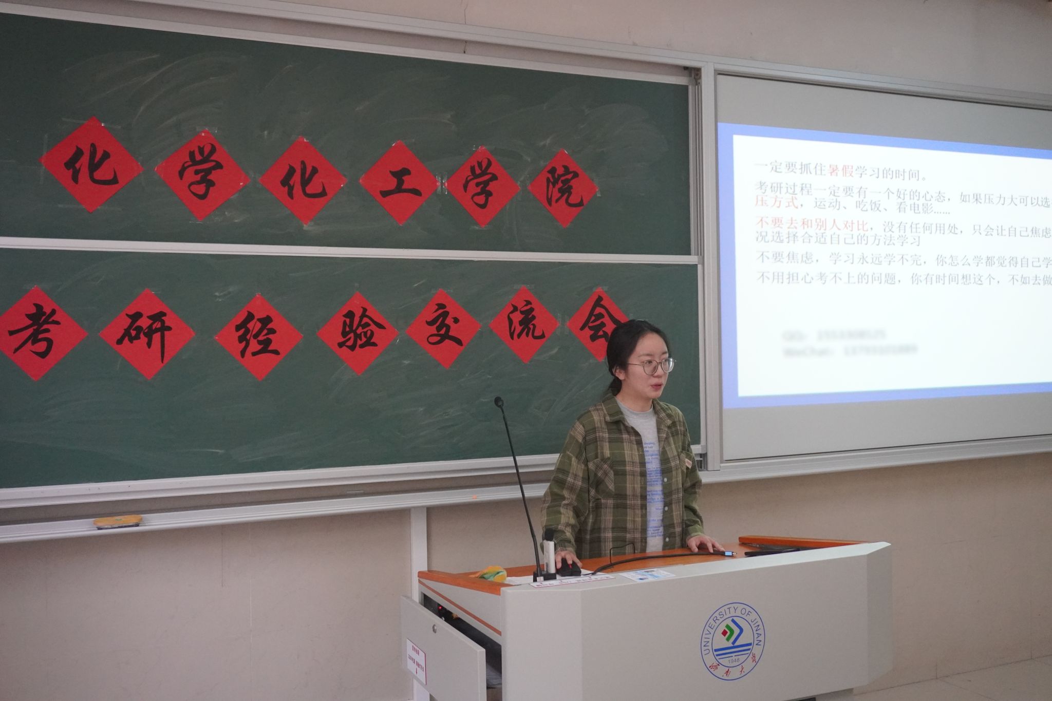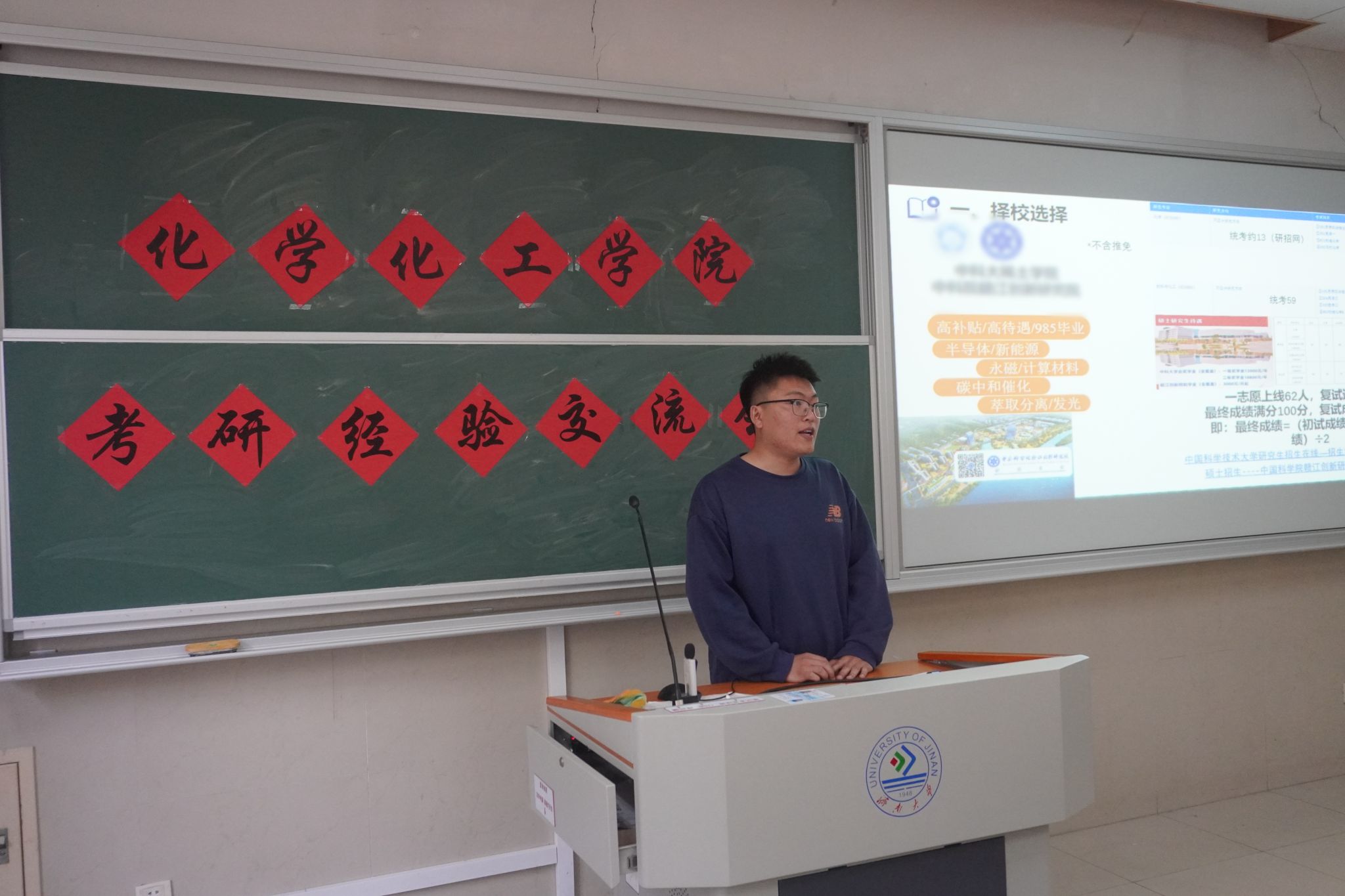 交流会上优秀学生代表将整个备考过程细分为基础复习阶段、强化提高阶段、冲刺复习阶段三个关键阶段,按照时间轴顺序梳理复习任务安排。康同学围绕具体科目、时间分配、月度计划等多个方面为大家细致讲解备考过程;常同学面向有留学目标的同学开展相关咨询并提供宝贵建议,从选校、申请材料准备、面试技巧等方面分享实用建议。在互动环节中,来自不同录取院校的优秀学子代表详细解答了同学们提出的问题,并叮嘱大家要保持积极良好的心态,坚持体育锻炼,只有身体健康、精力充沛,才能更好地应对考研备考过程中的各种挑战。