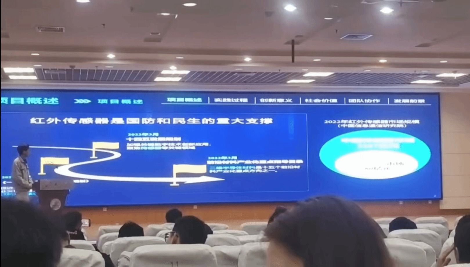 参赛团队依次以PPT汇报的形式从项目概述、实践过程、创新意义、社会价值、团队协作和发展前景等方面对团队项目进行五分钟阐述。本次参赛作品涉及二维材料、红外探测器、安防监控等多个方面,也有块状晶习、抗击癌症、药品制作等贴近民生的作品。汇报结束后,各评委老师对各参赛团队项目优势、存在的问题,下一步研究方法等提出宝贵建议,参赛选手获益匪浅。