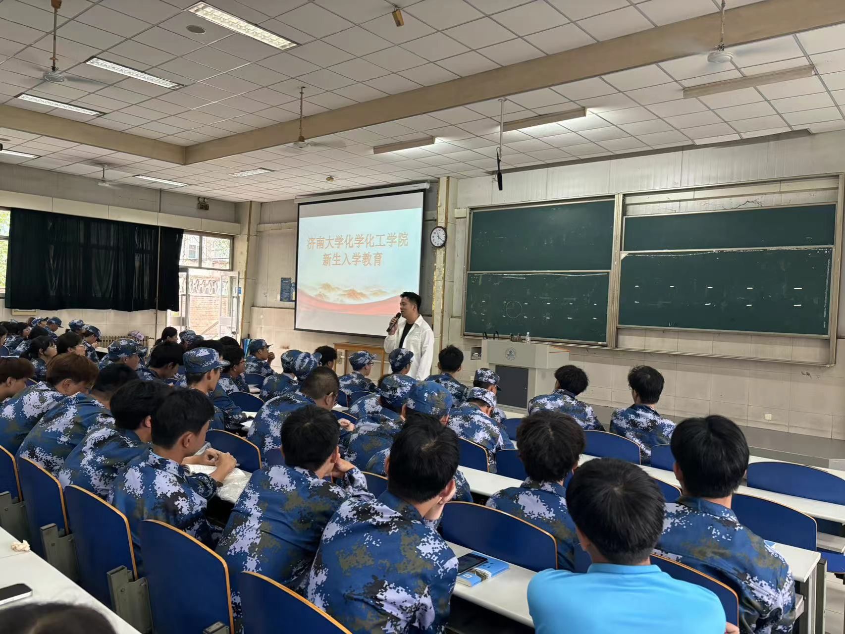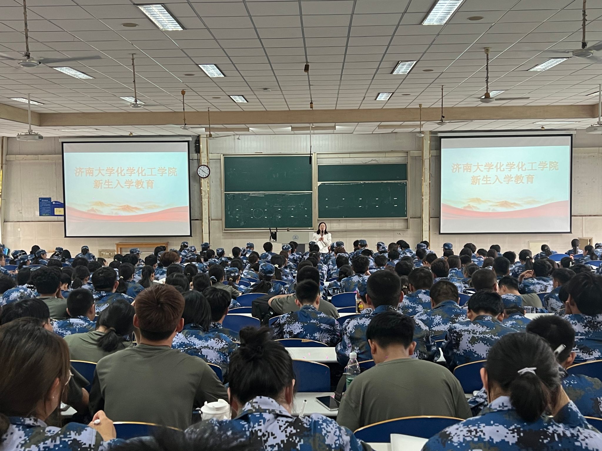 李健慧从目标愿景、学院现状和发展态势等方面对学校、学院的相关情况进行介绍,紧紧围绕大学生学习、成才、就业向同学们分析了当前的国内社会发展状况以及就业形势的变化。针对学生关注的内容做了重点讲解,详细阐释了校规校纪、日常管理和服务体制,叮嘱学生遵守法律法规和学校各项规章制度。李健慧对2024级新生的未来发展提出要求和期望:“要珍惜大学美好时光,注重全面发展,做优秀大学生。”