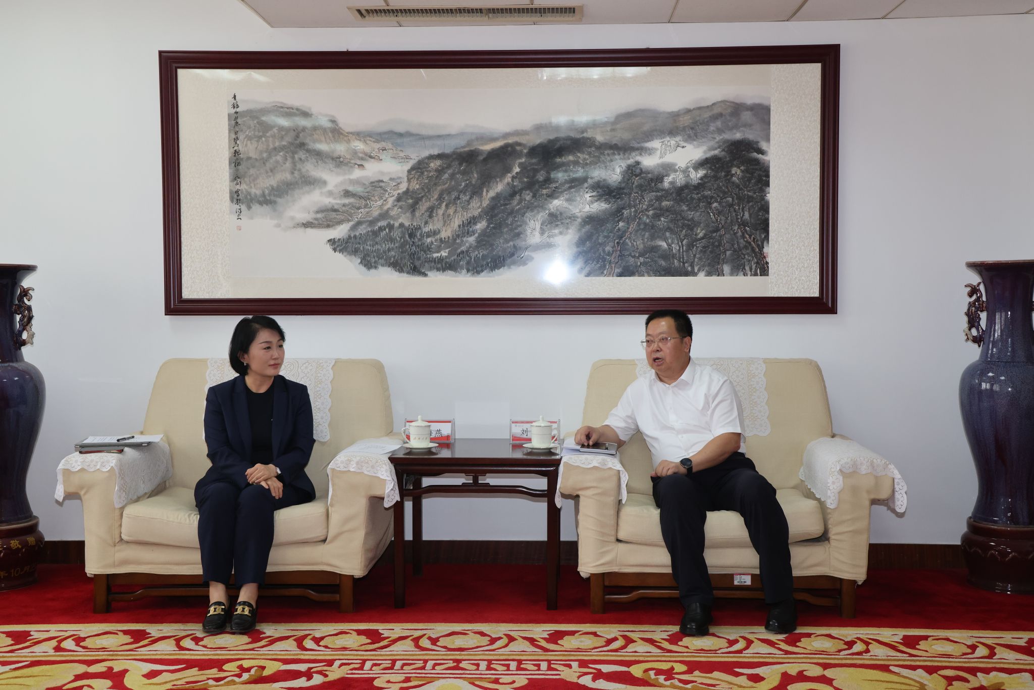 交流座谈会前,刘宗明会见了刘海燕一行。他对齐成控股集团对学校的关心支持表示感谢,并简要介绍了williamhill的历史沿革、学科建设、科研成果和人才培养等方面的基本办学情况。他指出,双方在产学研就等方面具有高度契合点,前期就业实习基地的建立奠定了良好的合作基础,期待双方未来能开展更广泛的合作,充分发挥williamhill的智力优势,为企业高质量发展注入新动能,共同谱写校企合作新篇章。