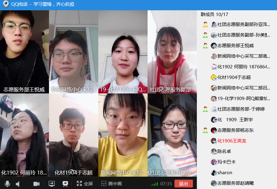 活动开始前,由心连心爱心社的活动负责人简述活动流程,并强调了注意事项。上午10点,参与者们准时上线,本次活动正式开始。活动伊始,同学们一起观看了三段《生命缘》—抗击新型冠状病毒特别报道纪录片。同学们在纪录片中看到了北京地坛医院ICU病房中,医生不顾自己安危,宁愿暴露身体也要为患者进行听诊,感受了在抗击肺炎时医生们对患者的温暖;看到了在各个社区中,所有居民都在为打赢这场抗疫阻击战做出自己的努力。随着影片的不断深入,同学们对此次疫情的认知更加深刻,同时对奋斗在一线的工作人员更加钦佩与感激。观看完纪录片后,每位参与者都抒发了自己内心的感慨,相互交流。而后,活动负责人对此次活动进行了总结。至此,本次“学习雷锋,齐心抗疫”活动圆满结束。
