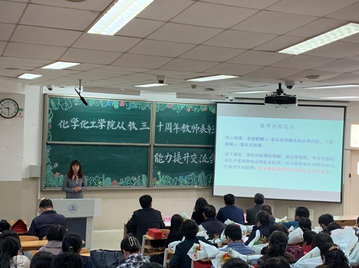 颜梅院长致辞,回瞻学院在专业发展、课程建设、师资队伍建设等各方面取得的工作成绩,对老教师在过去几十年为学院教育事业发展做出的贡献深表感谢,对青年教师提出传承学院立德树人、教书育人的光荣职责,进一步增强中国特色社会主义的理论认同,政治认同,情感认同,争做学生心中最美老师的要求。青年教师要以国家级、省级、校级教学名师及优秀的老教师为榜样。在一流专业建设、精品课程建设、教材建设、创新创业人才培养等方面勇挑重任。她表示,老教师的辛勤付出为学院发展打下了坚实的基础,青年教师作为学院的骨干力量,学院会继续提供强大的支持和优良的环境,促进教育教学工作再上新台阶。