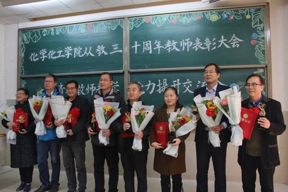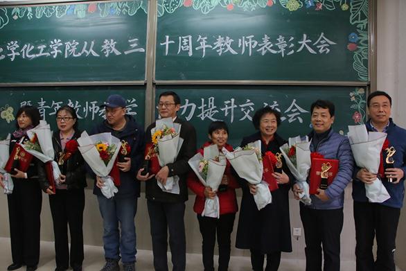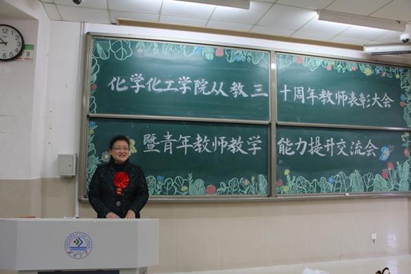 学院领导为31位从教三十周年教师颁发荣誉证书和纪念奖杯,青年教师为老教师献花,颁奖仪式热烈隆重,感动满满。国家级教学名师魏琴教授代表从教三十周年教师发言,她激动地回顾自己从教的峥嵘岁月,三十年弹指一挥间。作为见证学院发展壮大的老院长,感谢学院全体教师一直以来在每个历史发展阶段为学院无私的奉献,希望青年教师能够传承优良师德师风。期待学院明天更好。