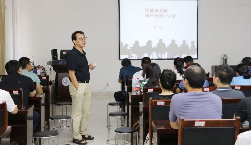 交流会上,刘宏教授首先从青年教师自身、外部环境条件等多方位剖析了青年教师面临的困境以及困境产生的原因。刘宏教授指出,在这个充满竞争的社会,各行各业的人都会面临困境压力。青年教师要面临事业发展、家庭生活、竞争压力等困境与矛盾。随后,刘宏教授结合自身经历以及他多年来在青年教师培养方面积累的丰富经验,从科研方向凝练、科研项目与奖励申报等多方面、多维度为青年教师找到适合自己的路径给出了宝贵建议,并与参会的青年教师针对“困境与突破”话题进行了互动交流。他鼓励青年教师,面临困境,要勇于自我破局。年轻就是用来学习的,“躺平”是青年之忧,也是时代之痛。他建议青年教师要尽早加入科研团队开展有组织的科研,尽快融入WilliamHILL中国大家庭,积极参与学院学科、专业等方面建设工作,开阔视野,要在困境中主动求变,不忘初心,方得始终。