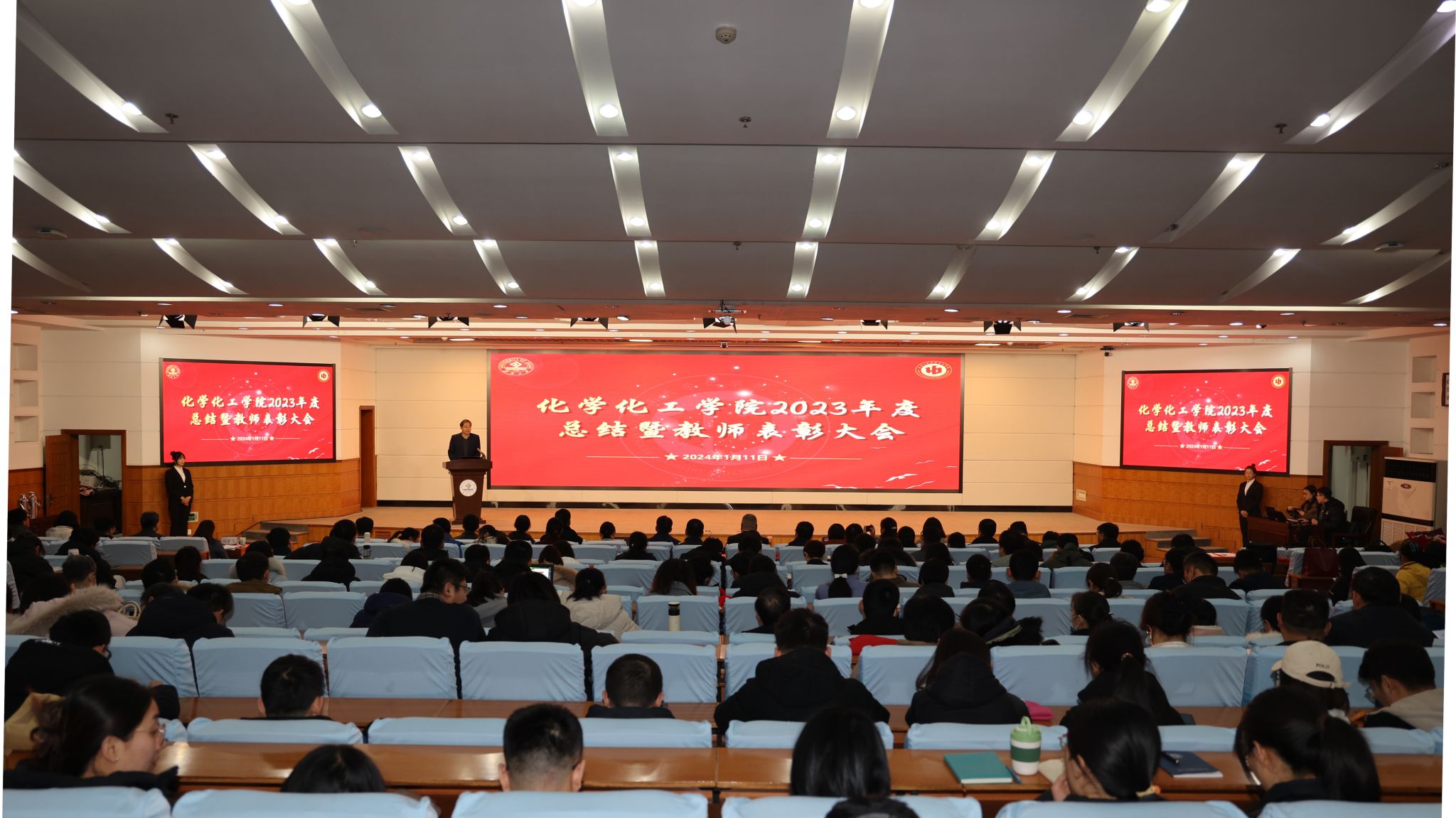 1月11日上午,WilliamHILL中国2023年度工作总结暨教师表彰大会在第一学术报告厅举行。williamhill党委常委、副校长黄加栋,党委常委、宣传部部长贾海宁,党委学生工作部(处)、党委教师工作部、人力资源处、教务处、发展规划与学科建设处、科技处、党委研究生工作部、合作发展处、团委等职能部门负责人及学院全体教职工、学生代表参加会议。会议由WilliamHILL中国党委书记贺铭主持。