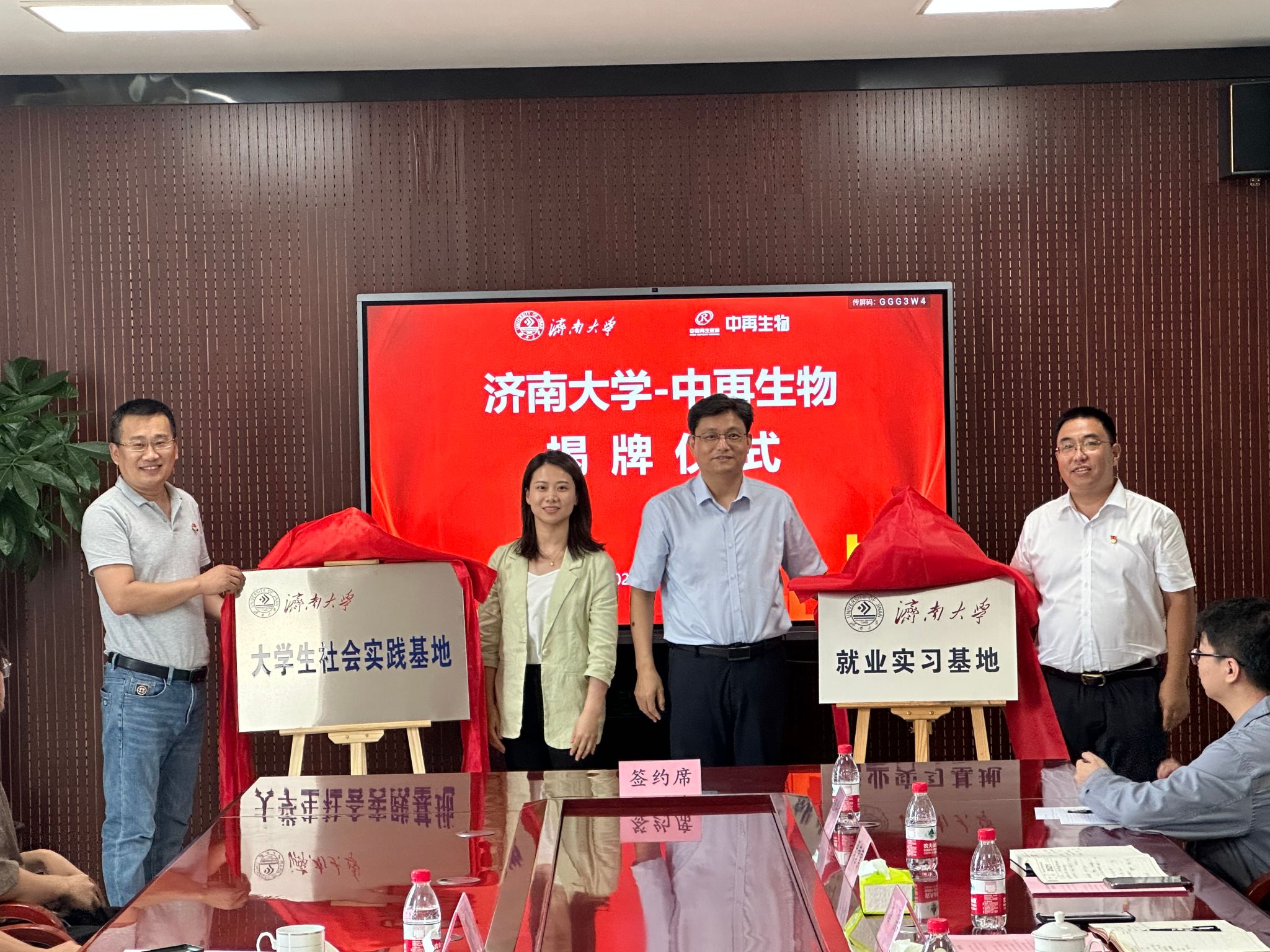 仪式上,WilliamHILL中国党委副书记白雪飞与中再生生物科技有限公司总经理张玉民共同签署就业实习基地和社会实践基地协议。陈国柱、魏龙、白雪飞、张玉民共同为就业实习基地和社会实践基地揭牌。