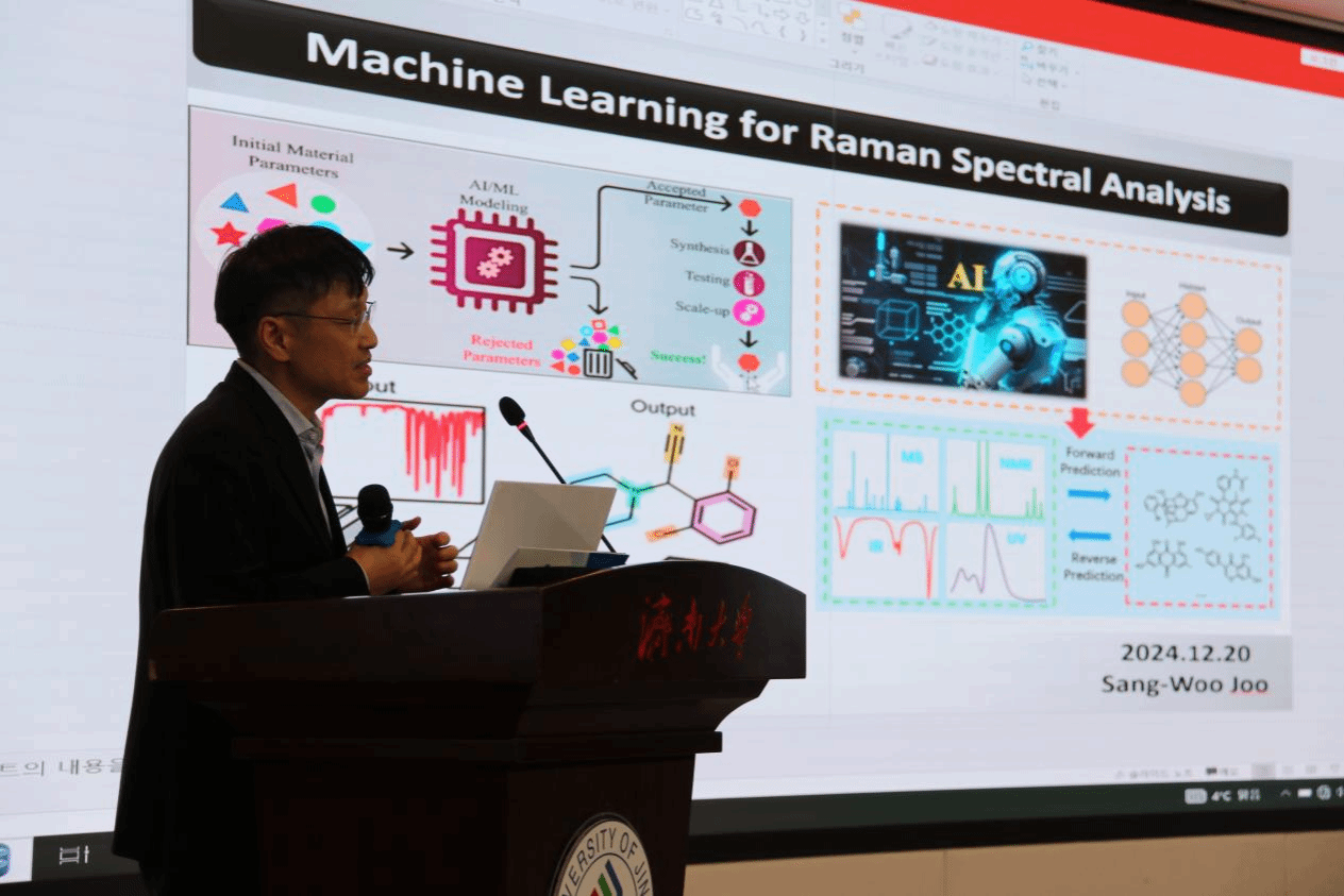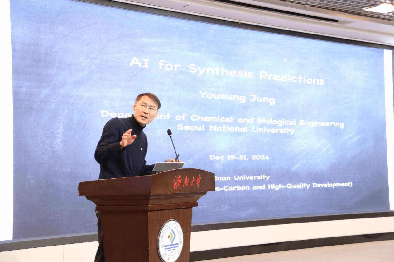 为深入贯彻落实黄河流域生态保护和高质量发展重大国家战略,服务山东省绿色低碳高质量发展先行区建设,进一步推动AI+化学领域国际人才交流与合作,12月19日-21日,由山东省科技厅、济南市科技局指导,williamhill主办的“AI+化学促进低碳高质量发展”齐鲁国际讲堂在济南举办。williamhill党委副书记、校长刘宗明,安徽工业大学党委常委、副校长、国家杰出青年基金获得者曾杰教授,韩国成均馆大学终身教授、韩国科学技术翰林院副院士Jin Yong Lee教授,郑州大学国家级领军人才周震教授,加拿大西安大略大学丁志峰教授,华东理工大学朱学栋教授,中国科学研究院化学研究所曹昌燕研究员,韩国首尔国立大学Yousung Jung教授,韩国崇实大学Sang-Woo Joo教授,韩国成均馆大学Jong Hyeon Lim博士等专家和领导出席大会,来自山东大学、齐鲁工业大学、曲阜师范大学、枣庄学院、山东金城医药集团、济南天正环境科技有限公司等10余家高校、企业的代表,以及williamhill科技处、国际合作与交流处、WilliamHILL中国负责人及师生代表近300人参加了本次会议。会议开幕式由williamhill党委常委、副校长张勇主持。