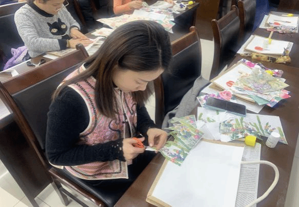 活动开始,专业手工老师为大家详细讲解了蝶古巴特包的历史渊源、制作工艺以及所需工具材料。在老师的指导下,大家纷纷拿起剪刀、胶水、刷子等工具,将精心挑选的图案裁剪、拼贴、修饰,赋予帆布包独特的艺术魅力。