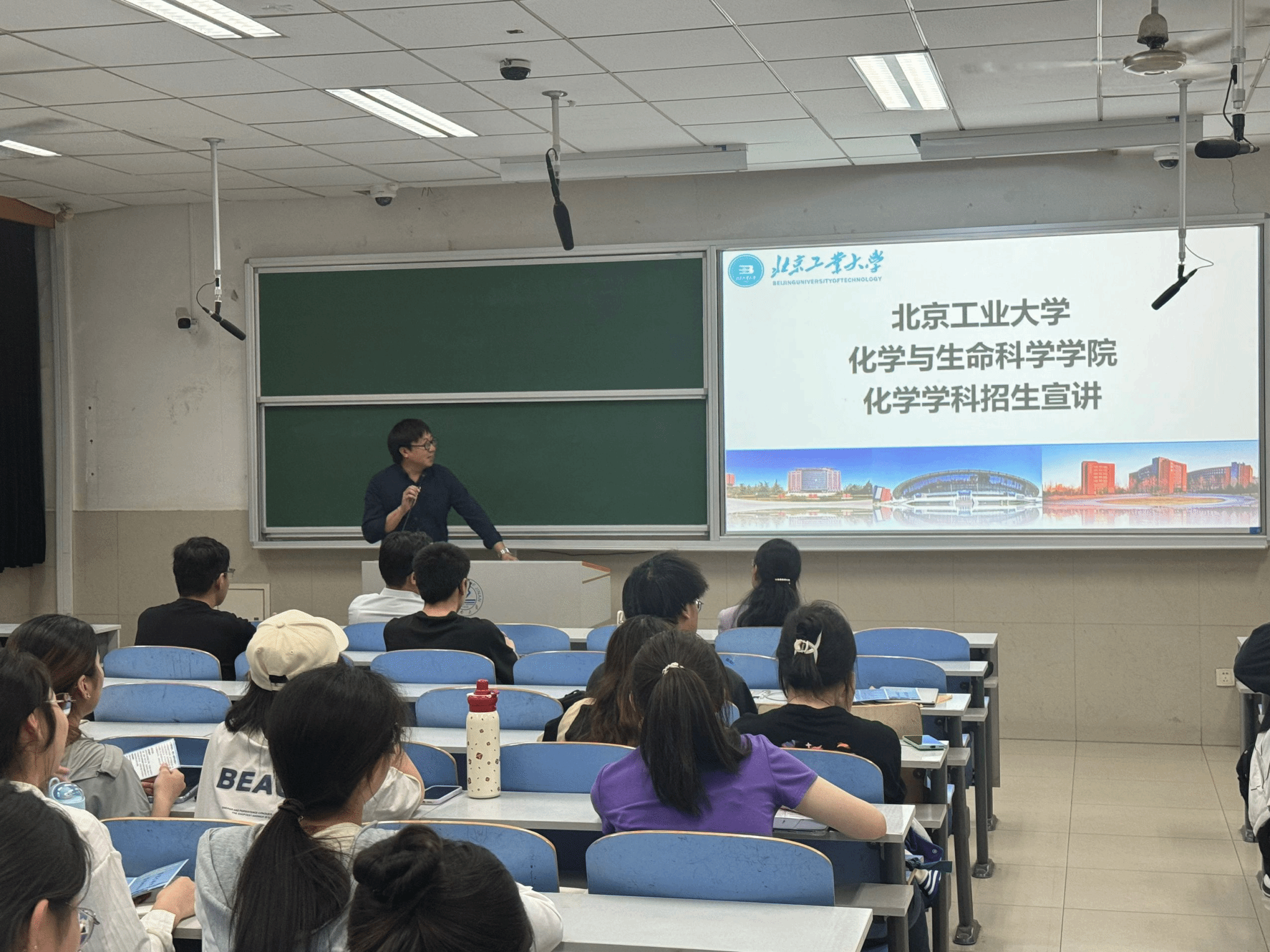 陈国柱对北京工业大学宣讲团的到来表示热烈欢迎。他在致辞中表示,北京工业大学作为国家“双一流”建设高校,在化学、生命科学等领域拥有雄厚的科研实力和人才培养平台,此次宣讲为两校搭建了沟通桥梁,也为学生提供了深入了解优质院校的宝贵机会。他鼓励在场学生把握机遇,结合自身兴趣与职业规划,科学选择考研方向,并强调学院将持续为学生升学就业提供全方位支持。