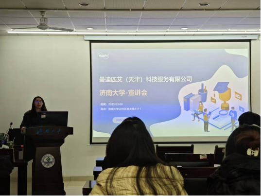 宣讲会上,曼迪匹克人力资源部门负责人详细介绍了公司的发展历程、企业文化、业务范围以及未来发展规划。曼迪匹克始终秉承“开放科学,服务社会”的理念,致力于为全球科研工作者提供高质量的学术出版服务。目前,曼迪匹克已出版400多种同行评审学术期刊,涵盖科学、技术、医学众多领域。
