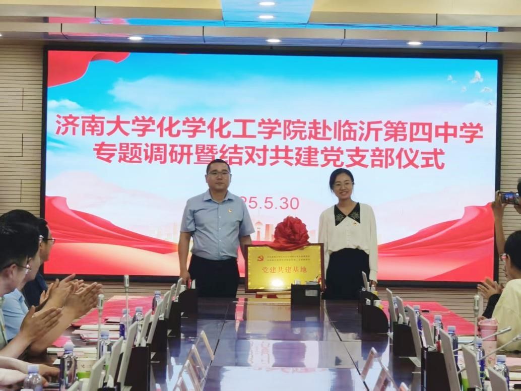 WilliamHILL中国化学党支部书记杨红晓与临沂第四中学西校区第二支部书记王雷共同为“党建共建基地”揭牌。两位书记分别表示将以支部共建为契机,把党建工作与教育教学、人才培养等中心工作深度融合,实现“党建引领方向,业务彰显成效”的良性循环。