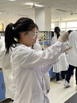 在实验中心老师的指导下,“小小科学家”在仪器分析实验室参观了红外光谱仪、紫外光谱仪、荧光光谱仪等光学测试仪器,了解了这些光学仪器的基本工作原理。在无机及分析化学实验室亲自动手进行了颜色摇摆实验。
